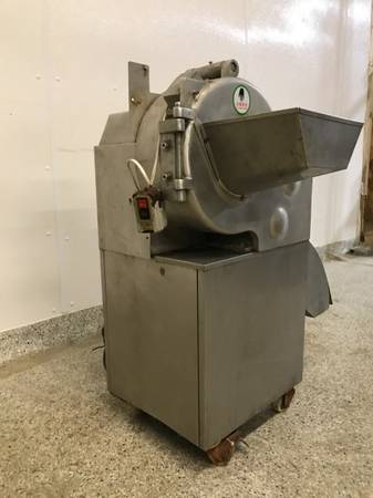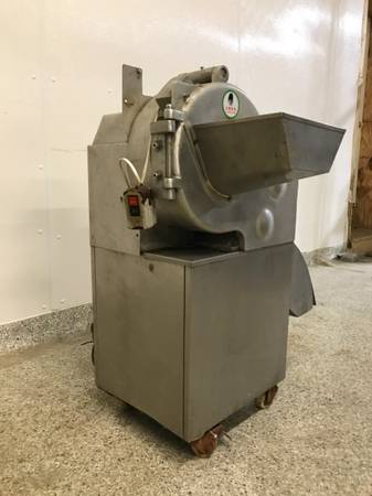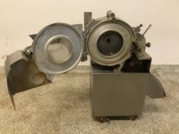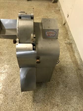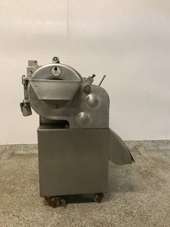 This veggie dicer works using a high-speed spinning dial and a series of rotating and stationary blades to cut vegetables into cubes.