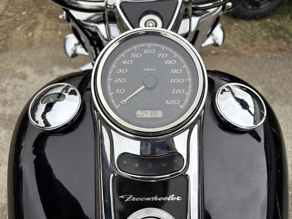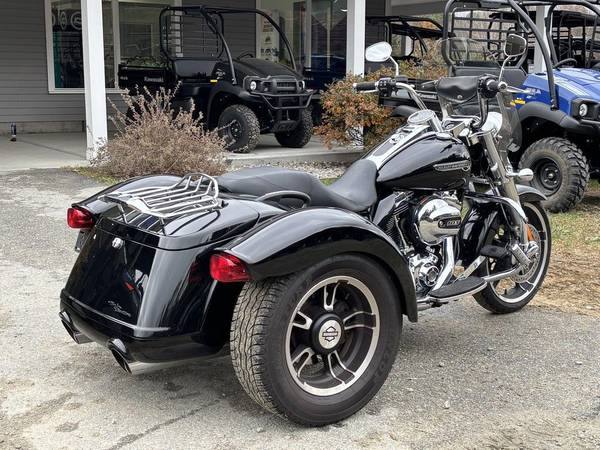 The Freewheeler® puts stripped down, custom style into an easy handling frame that lets you roll with the confidence three wheels gives to a rider. You get classic cruiser lines and styling details, like bobtail rear fenders, slash cut pipes, chrome headlight nacelle, 12-inch mini ape hangers and Enforcer aluminum wheels. You also get enough cargo space to hold two full-face helmets. The acceleration is instant thanks to the low-end torque of the all-new Milwaukee-Eight® 107 engine. And the 49mm front forks and adjustable rear suspension make the ride smooth. They say good things come in threes, and Freewheeler is the proof.