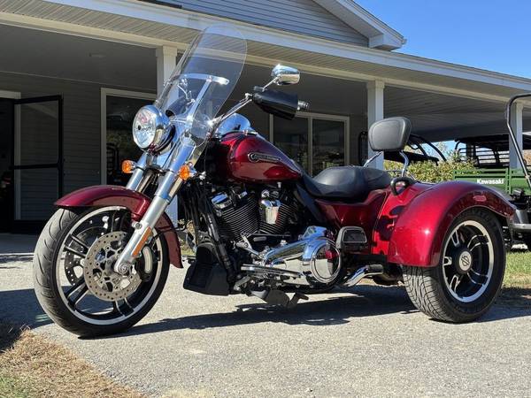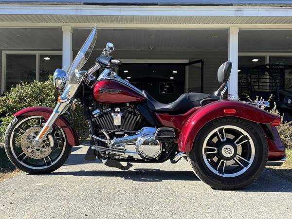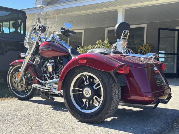 The Freewheeler® puts stripped down, custom style into an easy handling frame that lets you roll with the confidence three wheels gives to a rider. You get classic cruiser lines and styling details, like bobtail rear fenders, slash cut pipes, chrome headlight nacelle, 12-inch mini ape hangers and Enforcer aluminum wheels. You also get enough cargo space to hold two full-face helmets. The acceleration is instant thanks to the low-end torque of the all-new Milwaukee-Eight® 107 engine. And the 49mm front forks and adjustable rear suspension make the ride smooth. They say good things come in threes, and Freewheeler is the proof.