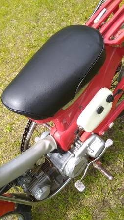 1968 Honda CT90 4 speed with high-low transmission. Everything works. New tires, tubes, cables, wire harness, seat cover, downtube cover, mirrors, side covers, lights, etc.