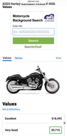 I am the second adult owner of this Excellent Condition 2005 Harley Davidson VRSCB (VROD) 1130cc Fuel injected and Liquid Cooled powerplant with 19,032 original Miles. All Required Service up to date. VERY FAST and Operates as it should. No Known issues. Clean Vermont title in my name. Possible Trade for excellent condition Car Hauler / Equipment Trailer (Must have Title or Certificate of origin)
