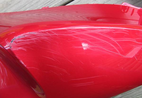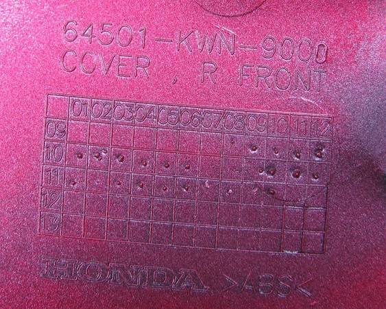 From a 2011 Honda PCX 125cc but may fit 2013 - check your part numbers on line and compare to part numbers molded into parts as shown in pictures here. Scratched but can be repainted or touched up. No cracks! $45 for Both.