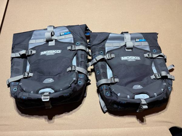 Moscow moto backcountry 25 liter side bags. Did not end up using. Sold bike. Comes with attachment plates and hardware.