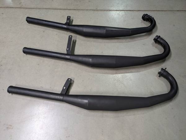 Kawasaki H2 750 Expansion Chambers. These are a repo of original Denco pipes. Perfect copy and professionally made. No dings dents or rash.. Mint condition. Not the typical pipes you see that look like they have been run over by a dozer. Comes with manifolds and springs. Everything needed to mount to your bike. These were only on the bike for 100 or so miles before I sold the H2 with its original pipes. I have included pictures of my old H2 with the expansion chambers mounted. $825.00 cash. Shipping can be arranged for $125.00. Pickup preferred. Email if more info is needed.