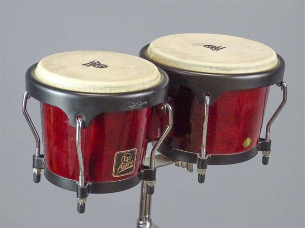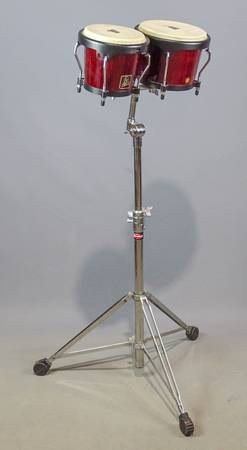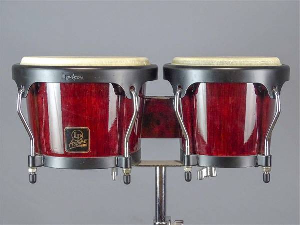 A Pair of Latin Percussion Aspire Wood Bongos on A Chrome Stand