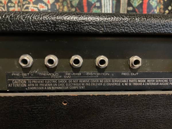 Has a decent tremolo instead of chorus though. Also has a switchable spring reverb, distortion (you probably won’t want to use haha) and also a volume boost. There are 4 jacks on the back for switching each individually. They’ve all been tested and work, but no switch is included.