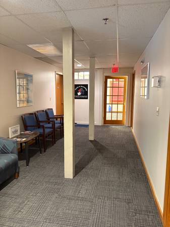 Can be rented as individual offices or as the full suite. Suite with 4-5 offices for lease on a shared floor, with a view of Lake Champlain. Nice entrance lobby with an elevator. Plenty of onsite parking. Access to a shared kitchenette and bathrooms. Other tenants in the building include counseling therapists and professionals. Rent is between $650 and $1,200, depending on office size. Utilities, cleaning included in rent.