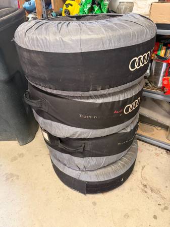 Set of four (4) factory Audi S5 wheels and Dunlop snow tires. Less than 2,500 miles on them from new. Back story of car they were fitted to found here: