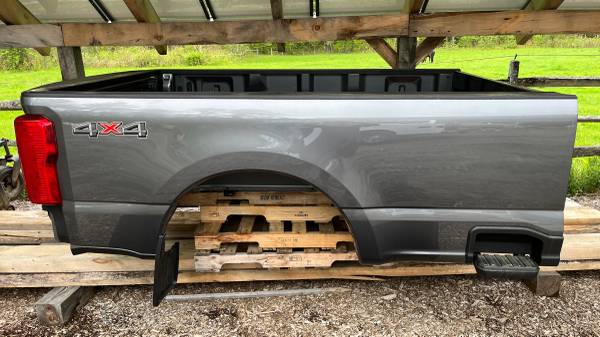 We put a utility body on our new F350 so we have the take-off bed for sale. Brand new, 8 ft, single rear wheel, gray; comes with the rear bumper as well.