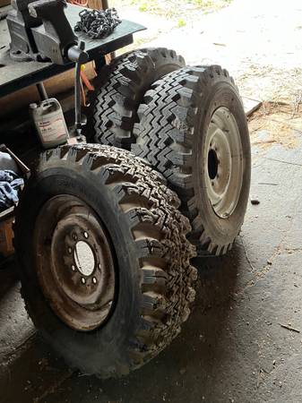 3 (THREE) 8 x 6.5 x 16.5 STEEL WHEELS WITH 9.50 x 16.5 SNOW TIRES MOUNTED ON THEM $120.00 CASH CALLS ONLY AT 8o2-922-zero 44 zero