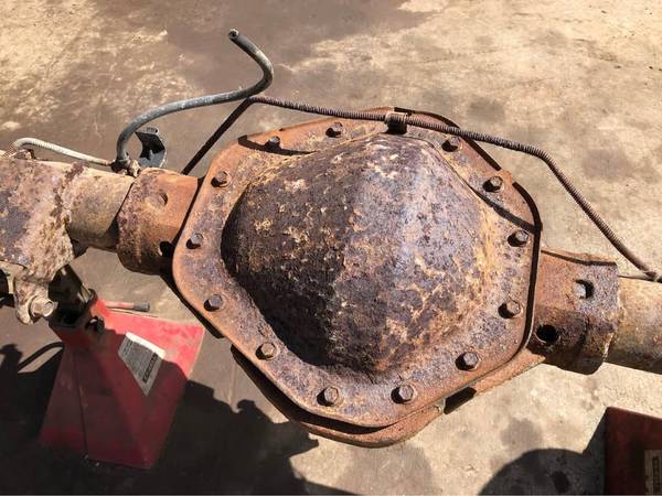 Rear axle from a 2002 Chevy Express 1-ton van with 150K miles. 3.73 gears, g80 posi. Wheel mounting surface distance is about 69” and spring pads are 50 3/4” apart, center to center. It drove fine....