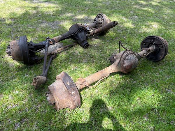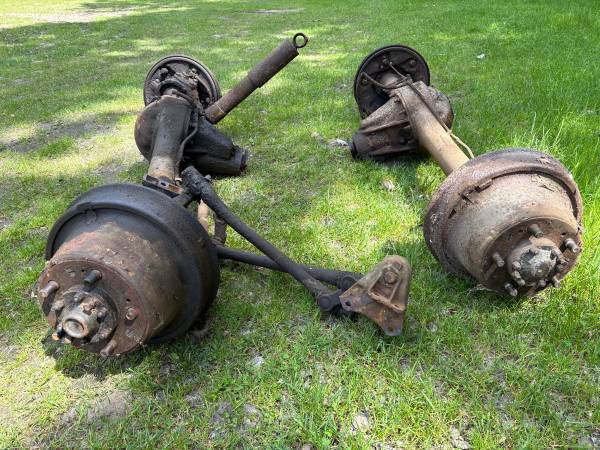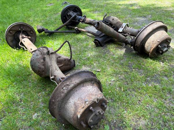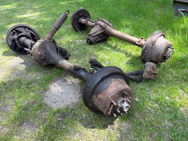 I have a pair of axles removed from a Dodge m37 army truck. They were removed from a truck that I was driving around the yard. 1 wheel stud is broken off on the front. Center section parts may interchange with a regular power wagon but the shafts are different. These have 5.83 gears. Pick up in Colchester, VT. $450 firm for the pair. Cash only. I can load them on your truck or trailer.