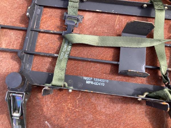 This is a pioneer tool rack for military Hummer HMMWV trucks. It holds a shovel, axe, and pick axe (not included). Could be used on other army vehicles or an off road trailer, Jeep, work truck, etc. Price is $20 each, cash in Colchester, VT. I have a few available. No shipping.