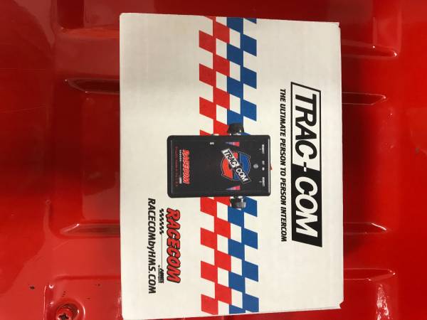 New in box Racecom Trac-Com Racing Headsets. Never used and still in the box. Perfect for a rally car or similar situation Leave your name and number and I will call you.