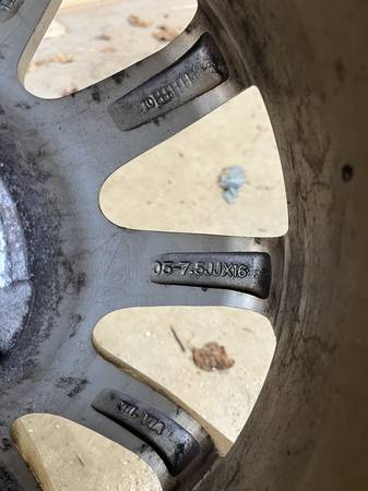 Elbrus I05 alloy wheels, used for a few seasons for winter tires on a 2012 Subaru WRX. In average condition. No tires mounted. Size: 16"x7.5" Bolt pattern: 5x100 Offset: 48