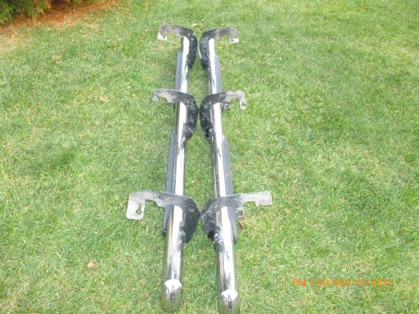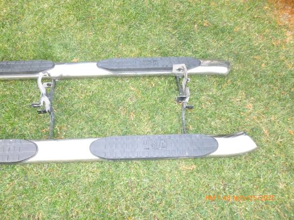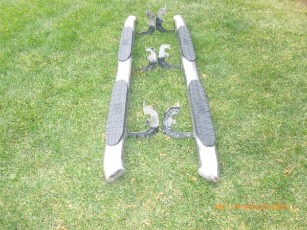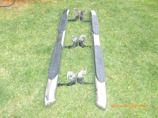I have a pair of Westin Nerf Bar Pro Traxx that came off of a 2023 Ram Quad Cab , with step pads, witch are 5 inch oval bent , Polished Stainless Steel, with welded end caps.. Nothing wrong with them ,just turned in the Ram.. ( Could stand a little more cleaning, as there is still some spots of road tar on them ) All hardware included..( probably now should of taken some pics a little closer up )