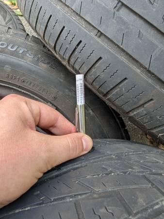 Selling a set of four wheels (16" diameter, 5x114 bolt pattern) and all-season tires from a 2009 Toyota Camry. Tires all hold air no problem and have no plugs. They are evenly worn, were rotated around regularly, and all have about 5/32 tread remaining (~45% of original tread depth). Wheels are in fantastic shape and have only light surface rust in some places.