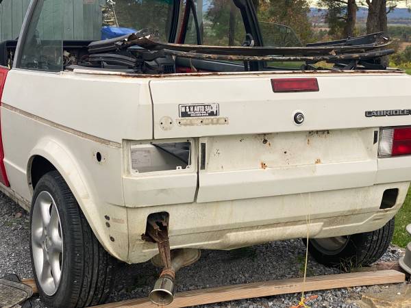 Rolling 88’ triple white parts car . 5spd trans and engine ran when parked. Good front fenders, radiator support. hood, all glass, tailgate, almost new tires on PCW wheels, complete top frame.. Many other parts available, nice front grill, complete leather interior, nice top boot cover. This is a roller. Needs towed. I can help with that too. Thanks for looking