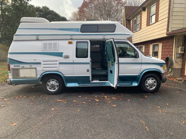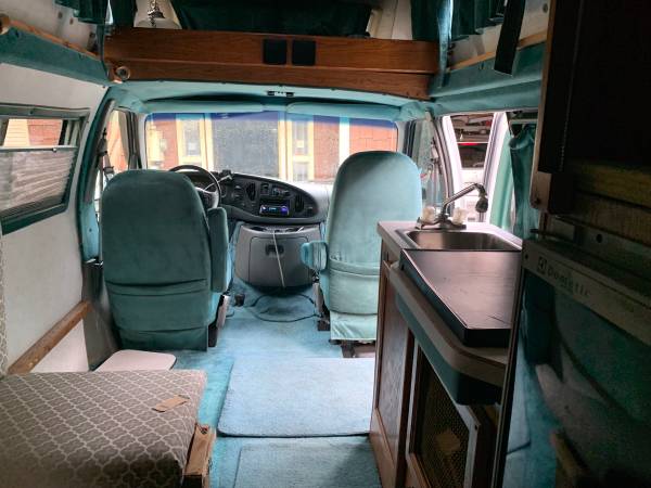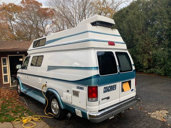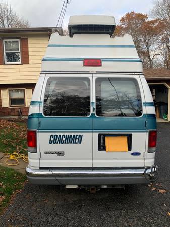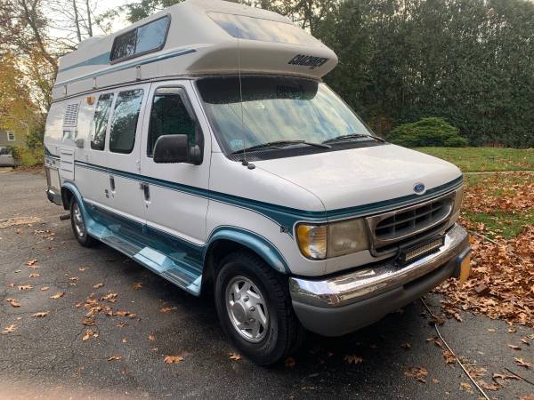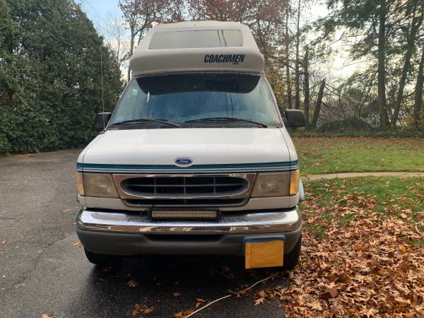 CLEAN 1997 FORD 19 FOOT COACHMEN VAN MOTORHOME . THIS IS THE PERFECT SIZE , EASY TO DRIVE AND YOU CAN PARK IT ANYWHERE .THIS VAN MOTOR HOME IS ON A FORD CHASIS AND HAS 145,000 MILES AND GETS 15 MILES PER GALLON . I JUST DROVE IT 75 MILES AND IT DROVE FINE . I GOT A PO 171 CODE WHEN I DID A DIAGNOSTIC ON . SO I DONT KNOW WHAT THAT ENTAILS AND I AM SELLING IT LIKE IT IS . PLEASE DONT ASK ABOUT THE CODE OR ITS REMEDY IF YOUR NOT FAMILIAR WITH IT NEITHER AM . I . THE COUCH THAT MAKES INTO A BED WAS REMOVED . THERE IS A SLIDING OVERHEAD BUNK BED IN THE FRONT . THE KITCHEN HAS A STOVE , MICROWAVE , REFRIGERATOR AND KITCHEN SINK. THE BATHROOM HAS A SHOWER , COMODE . THE MOTORHOME HAS ICE COLD ENGINE AIR CONDITIONING . WATER HEATER , THERMOSTATICALLY CONTROLLED FURNACE AND ROOF AIR CONDITIONER . NEWER TIRES . DOES NOT HAVE A GENERATOR . CLEAN TITLE . PRICE IS $ 6,950 .CALL 978 807 0174 .