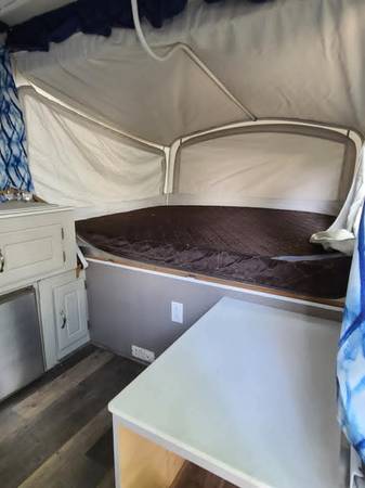 2003 coleman pop up 1 queen side 1 double side bump outs canvas in great shape no leaks or damage. floors are redone no water damage or rot. rear crank broken ca open from under rear of camper .