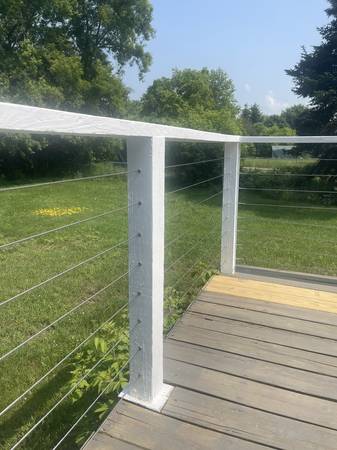 Plan an upgrade to a modern minimalist railing system, indoors or on an outside deck. Maintain your view with stainless steel cables, custom fitted on location. Add a new handrail to complete the upgrade. My complete price will be 1/2 of what a DIY system using Feeney, View Rail, or other similar systems. Please see my website for more info: