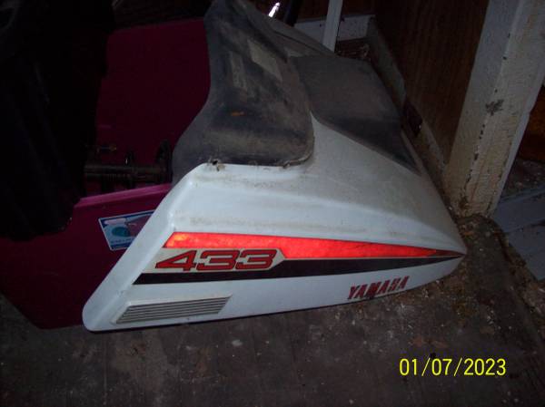 TO MUCH TO LIST CALL FOR INFO.AND PRICES,CAN SEND PICS OF PART NEEDED,HAVE ALL YEARS BUT MAINLY EARLY 1970s GP and SL parts,ALSO MANY ENTICER PARTS NOT IN THE PICS,some GPX STUFF SEE AD AND PICS,ALSO 1978-88 enticer parts,)The seat with red sides is an original 1974-75 GP 433/338 Yamaha seat needs a cover the foam is all good,175.00 for that,The other seat is a 1988 enticer 340 seat needs a recover 125.00)1974-75 GP 338/433 good track 300.00 1972 GP 433/292/GP 396 good track both tracks will fit some other vintage yamaha sleds,1 good sno jet gas tank off from ssts 1975/76/77 45.00 each,1978-88 enticer 300/340 carb airbox 50.00)a deal on everything,All the other parts in pics call for more info.8zero2 nine8nine nine6three0(search words exciter,enticers,srx,gpx,338,433,292,440,340,sst,star jet,ss 440)