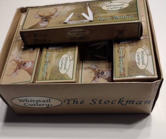 Twelve (12) Folding Pocket Knives - New Old Stock - The Stockman A box of 12 individually wrapped and boxed poker knives as pictured Call John