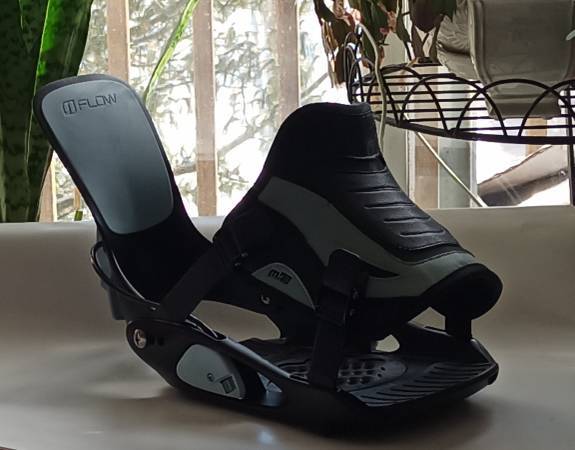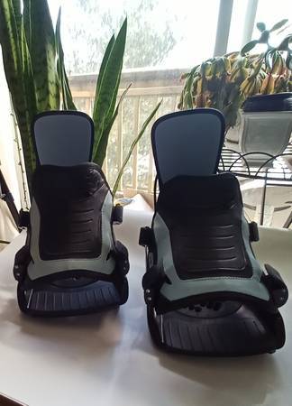 These are brand new never even attached to a board. The bindings are women's large, and include base plates and hardware. I got them for a new board and found they were too big for the boots. I didn't realize they carried intermediate sizes, my bad. Selling these to get a pair that will work with my boots.