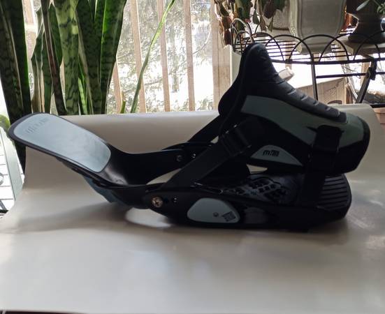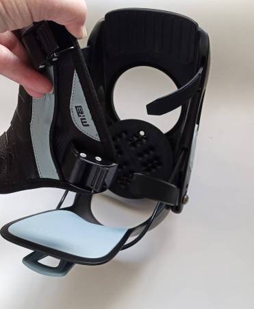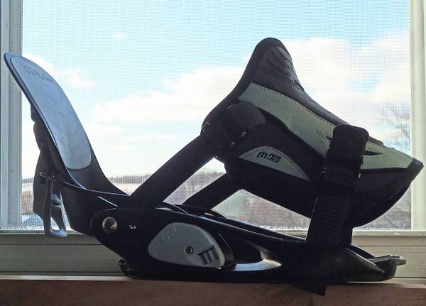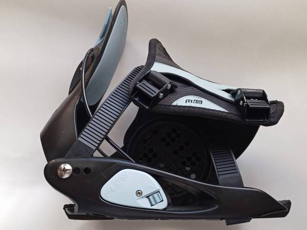 Black binding with light blue/gray. Featuring a POM baseplate and highback for the softest most forgiving ride, this all mountain binding also performs in the park. The hollowed out base plate reduces the weight and allows for butter soft landings. The MK3 is a super fun binding with as much potential as you. Also featured is a co-molded EVA toe pad and heel ramp.