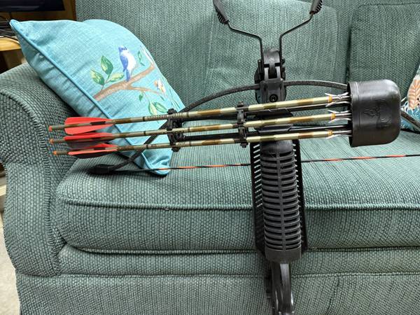 Barnett crossbow recurve, black color. Red dot scope, 3 arrow quiver and 3 18" Barnett arrow. Used only a couple of time for target shooting. Upgraded to a different crossbow.