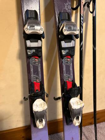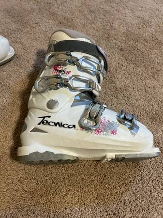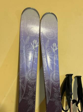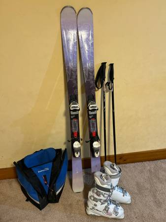 Downhill ski package for teen girls. K2 Lovit 76 skis - 149cm, shape 120/76/105 Marker adjustable bindings Technica Esprit 8 boots, size 25.5 (fits like women’s size 8) Swix poles Transpack ski boot...