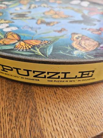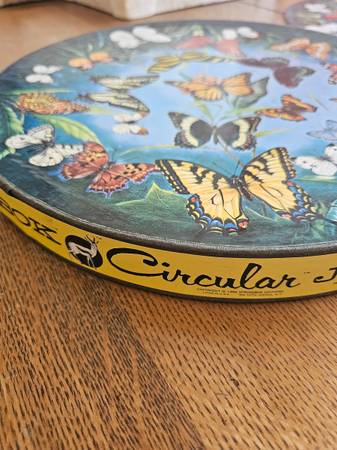 1966 Springbok Circular Butterflies Puzzle. Painted especially for Springbok Editions, Inc. by Jean Zallinger, 100% complete (no missing pieces), has been stored in original box which is in very good condition as well. Item # C924. The puzzle is 20 1/4 inches in diameter.