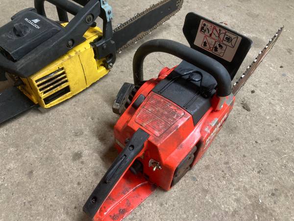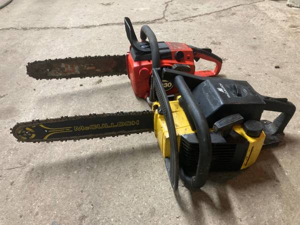 Homelite 330 chainsaw and Mcculloch Pro Mac 610 chainsaw. The Mcculloch looks to be missing the choke control. Both will crank over but don’t seem to run. Don’t know anything else about them. $25 cash for the pair in Colchester VT.