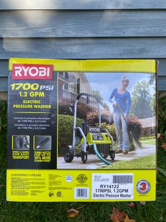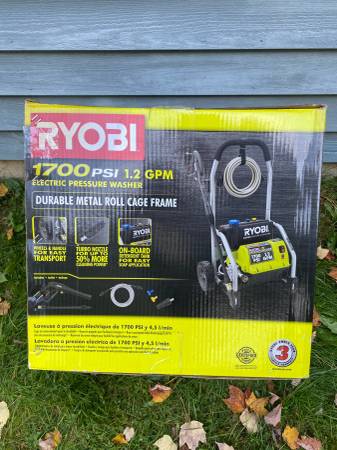 Ryobi 1700 PSI Pressure Washer 1700 PSI & 1.2 GPM Operator’s Manual 25 ft. High Pressure Hose Handle & Spray Wand Nozzles (3) New in box Cash & local pickup only