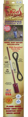 As stated, it comes with a 15ft line (actually a 10ft & a 5ft combined, but all the same), and igniter/sparker, and if you *really* need it, I'll even throw in some yellow gas rated Teflon tape. Unfortunately I don't have the original package anymore. But it was just a cardboard box.