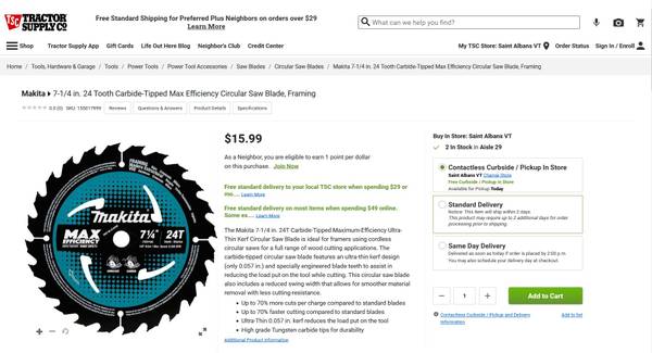 Makita 7‑1/4" 24T Carbide‑Tipped Max B-61656 Efficiency Circular Saw Blade, Framing $15 Cash Only - New Call This number does not receive texting eight-zero-two-three-nine-three-four-seven-zero-five