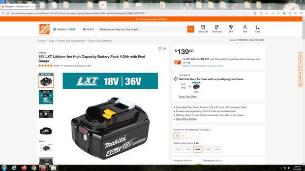 Makita 18V LXT 4.0Ah Battery $95 - Cash Only! Call This number does not receive texting eight-zero-two-three-nine-three-four-seven-zero-five