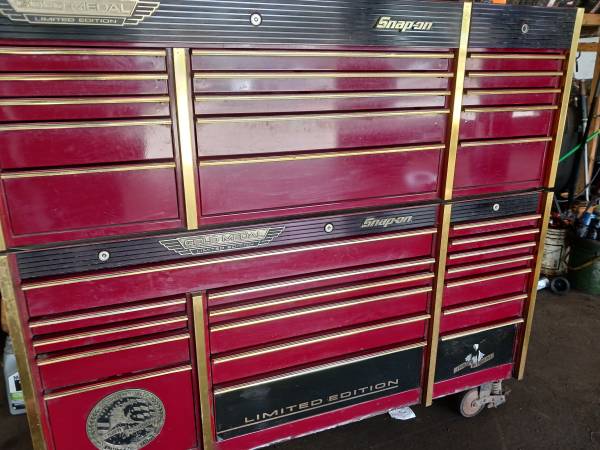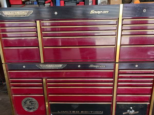 Snap On Gold Medal Limited Edition Tool Box, Asking $6000 obo. Will need 1 lock cylinder. Paid $11k when it was new. Have another toolbox no longer need this one. This box is 73"w 29"d 66"h. New boxes smaller than this one are $20k or more. Call or text show contact info
