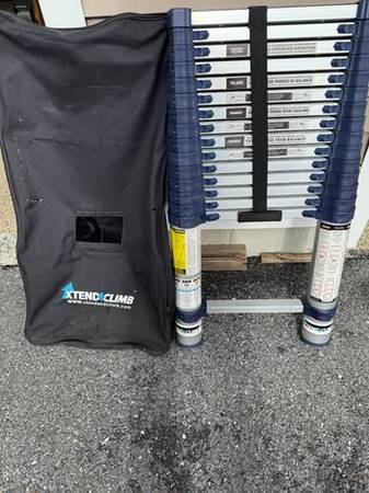 Heavy duty telescoping ladder. Like new. with case Extend climb brand