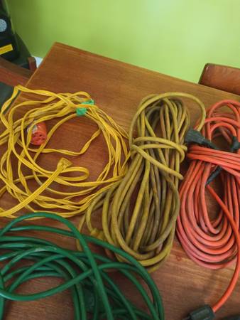 8 extension cords and 1 work light Lengths from 10 to 100 feet. $30 takes them all.