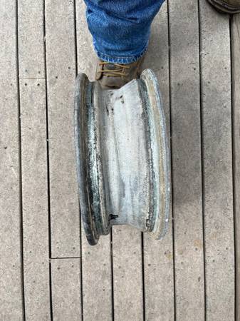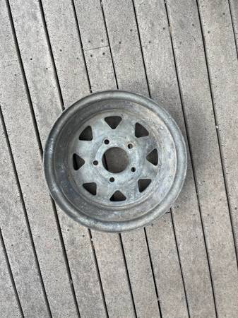 13” x4 1/2” galvanized trailer wheel 5x 4 1/2” bolt pattern Used but really nice shape Perfect for a spare $25. Cash CALLS ONLY. 8o 2-922-zero 44 zero