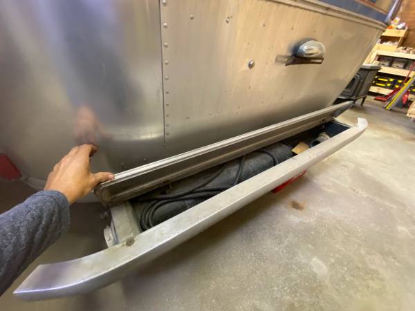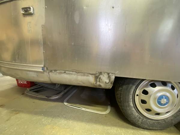 - one section on the passenger exterior was damaged and replaced with sheet metal- needs to be trimmed and finished.. otherwise exterior metal/roof/underbelly is solid, a few dents and dings here and there,needs the polish and shine.. door and windows operate and seal, have screens