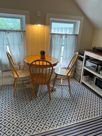 Small, furnished all inclusive efficiency apartment for rent. Second floor with private entrance, light filled three room suite with large bathroom and efficiency kitchen. Refrigerator, microwave, toaster oven, and an infrared cooktop burner.