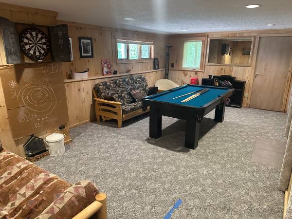 We have 2 TV’s with access to Roku. we have shelves full of board games, pool table and dart board to keep everyone occupied