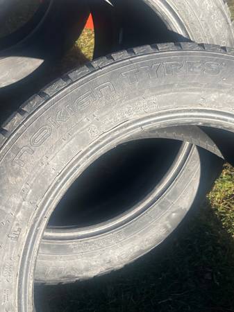 Winter tires with a season left on them Have a look at the pictures for condition plenty of tread Cheap tires, I hope someone can use them