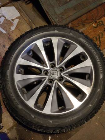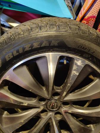 2016 Acura OEM wheels with Blazzak DM-V2 winter tires, size 245/55/19, (8/32" tread depth) includes TPMS sensors. Acura wheel part number TZ51908A. Wheel description - 19X8, 5 X 114.3 bold pattern, +45mm offset, 64.1mm Hub Diameter
