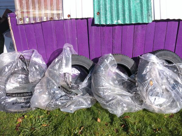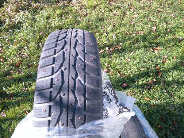Set of four Firestone studded winter tires. Definitely has at least one more season, and depending on your driving, up to 3 winters.