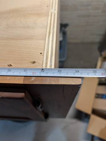 Was used in place as an over the fridge unit so not much traffic on it. Solid wood and is in fantastic shape. Went with a bigger fridge so needed the space cleared out, or otherwise would not have removed it.. just came down yesterday.