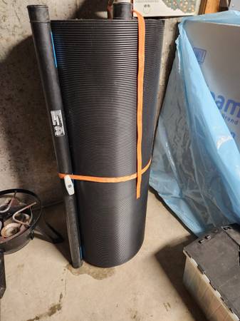 Here's a solar heater 4' by 20' with mounting straps Did not leak when we took it down This fall You pickup up from me FREE