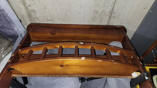 Wood Futon with cool storage in arm rests with clean cushion - no smoking, no pets. Missing hardware but for a few dollars, you can have a very nice looking Futon couch / double bed. Email me if...